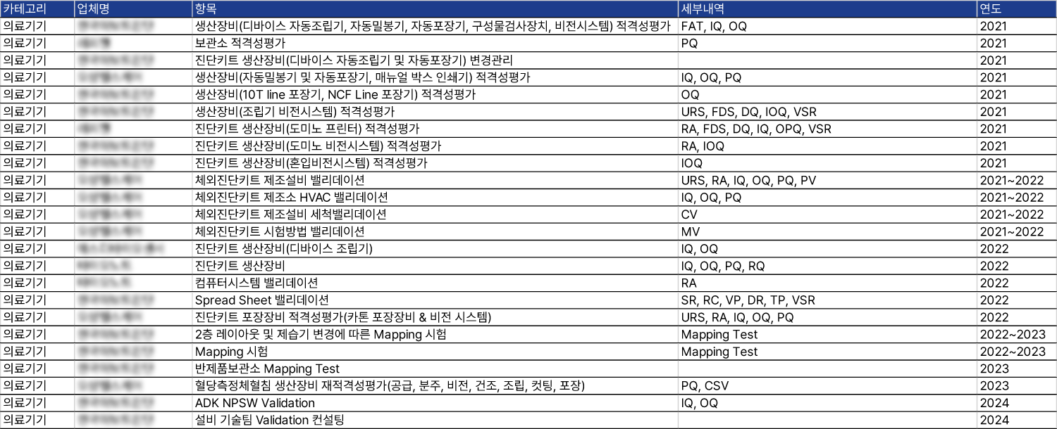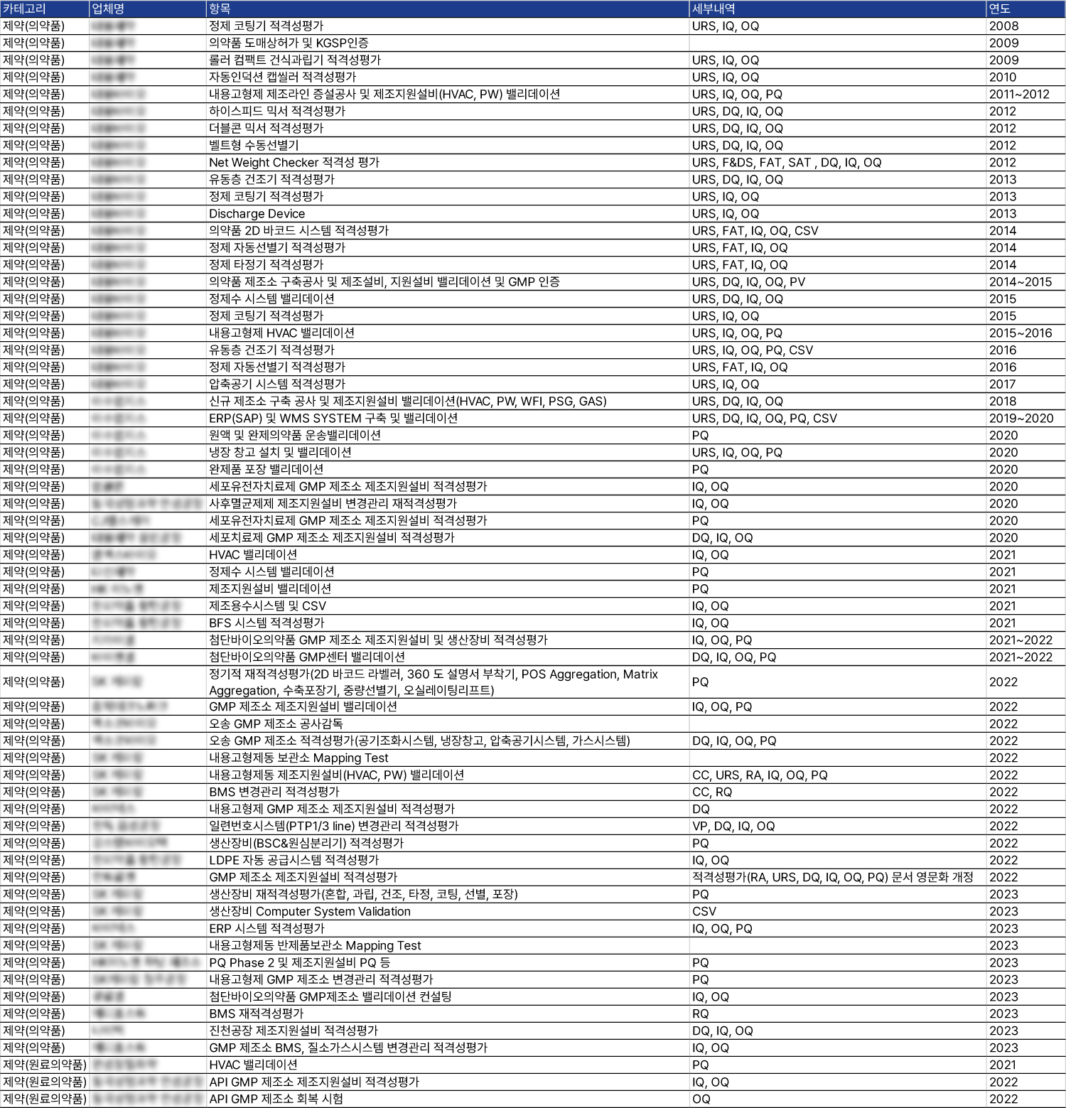URS/F&DS/DQ/IQ/OQ/PQ/시공 및 설계 감리